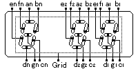 Ahhoz, hogy minimalizáljuk a kivezetéseket, a kijelzőt multiplex módon hajtjuk meg. A 6. ábrán megfigyelhető a kiosztás, miszerint a szegmensek közösítve lettek és minden karakter a rács kivezetésével aktivizálható, mint egy időosztásos módon. Ebben az esetben azonban a kellő fényerő elérése érdekében magasabb anód és rácsfeszültséget használunk, ez a feszültség 24V - 70V közötti, míg erőssége 10mA – 60mA. A 7-es ábra bemutat egy lehetséges megvalósítást. |